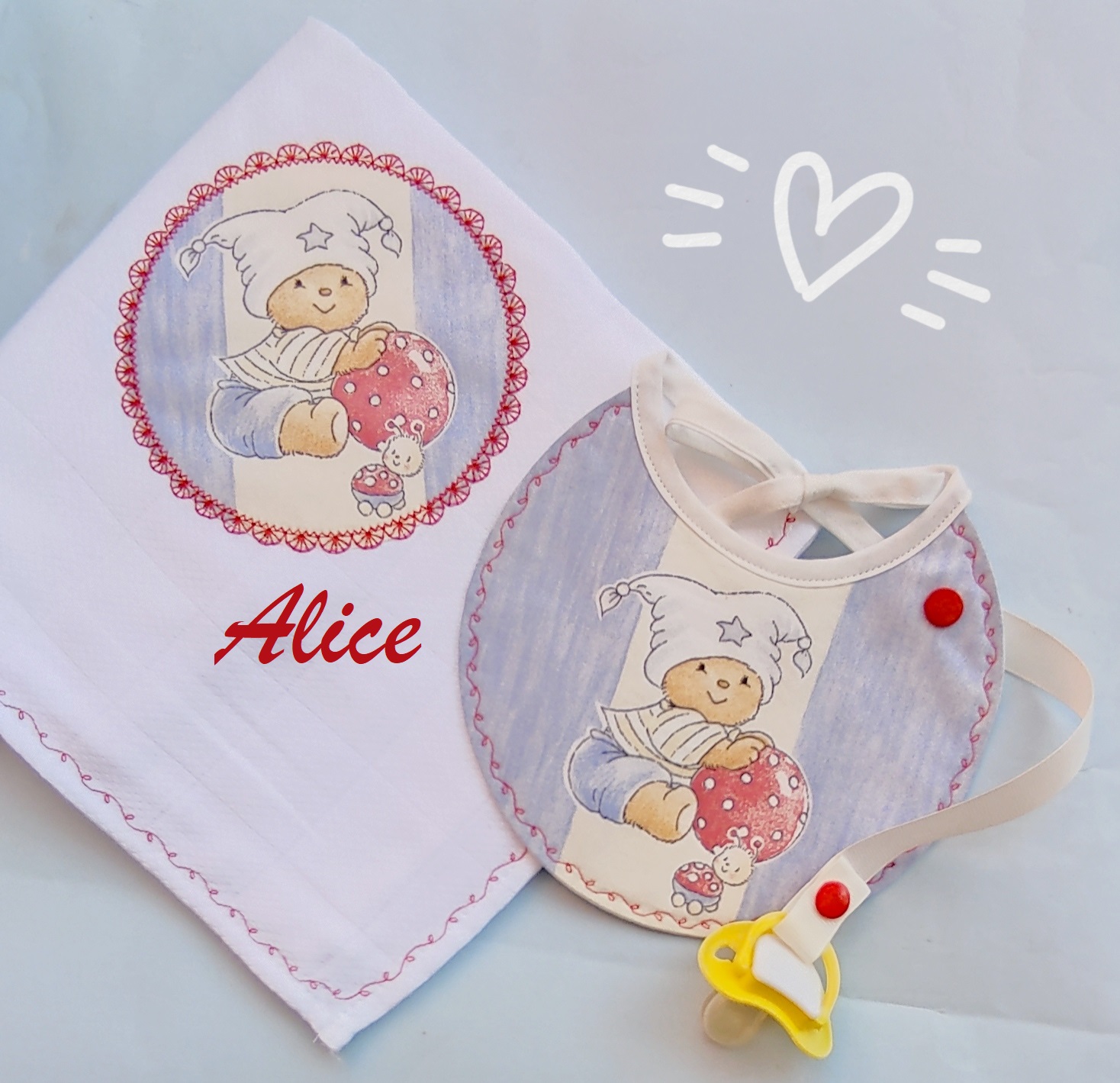 Conjunto mimoso personalizado, para o nascimento do bebé!